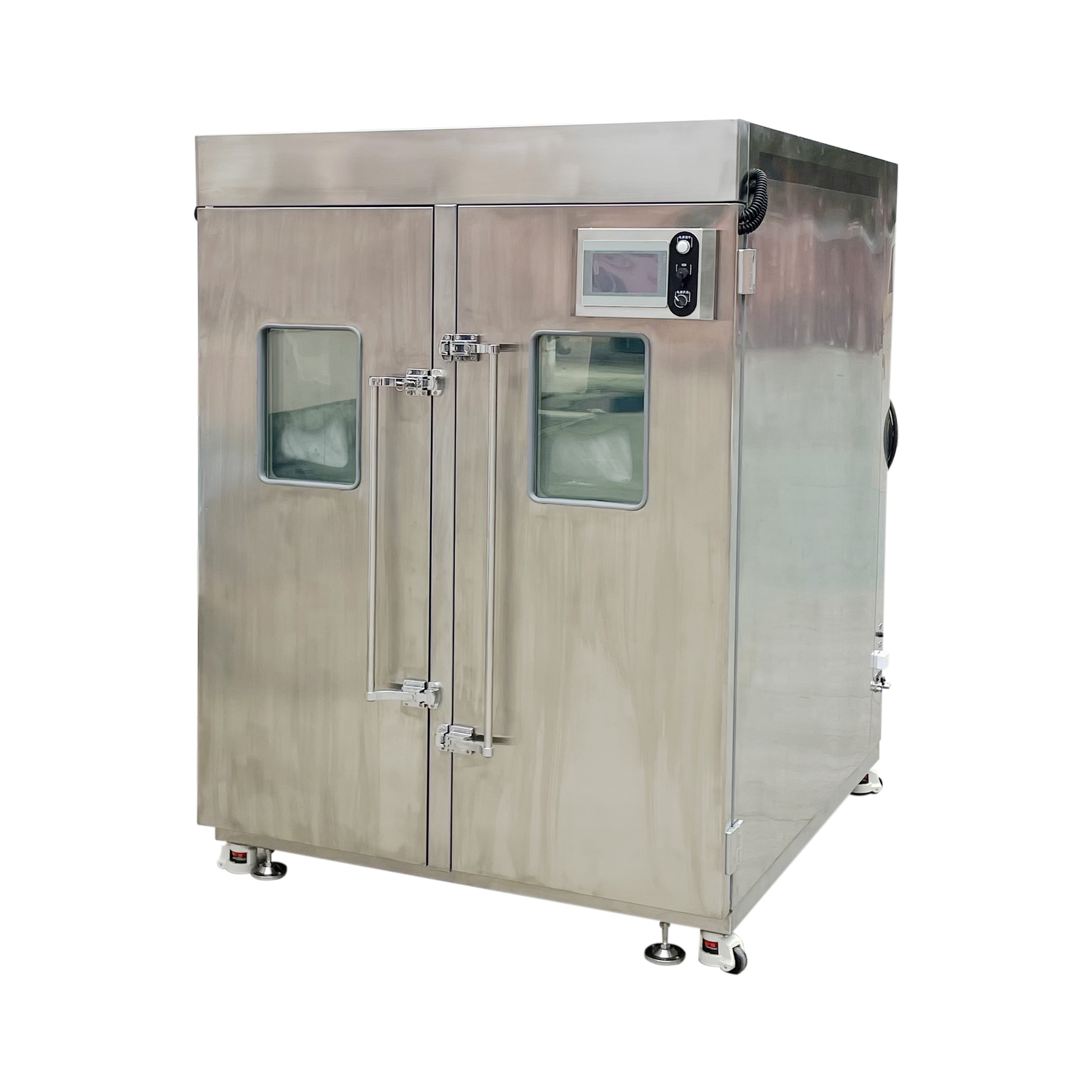 箱門采用不銹鋼飯金加玻璃觀察窗一體結構,并做加熱防冷凝處理,箱門上入觸摸屏風道形式采用前后大循環,風機馬達垂直安裝在頂部控制電器盒內,
