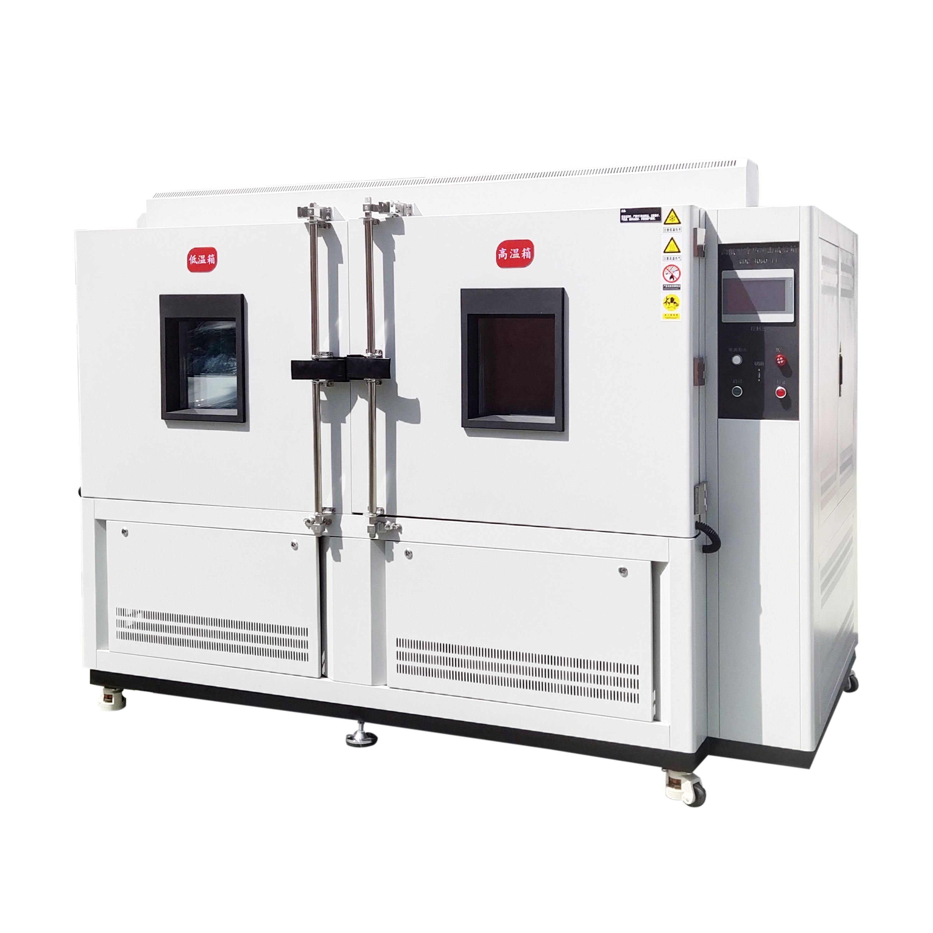本系列高低溫沖擊試驗箱適用于儀器儀表、電工電子、化學、材料等多種零部件或整機,作溫度快速變化條件下的適應性試驗,或進行應力篩選試驗,幫助對試品在擬定條件下的性能、變化作出科學的分析及評價。試驗箱采用左右式箱體、冷熱兩箱結構,采用提籃轉換試品所在實驗區域的辦法,達到冷熱沖擊試驗的目的。這種結構減小了冷熱沖擊時的熱負荷,縮短了溫度回復時間,也是可靠、節能的一種冷熱沖擊的方式。