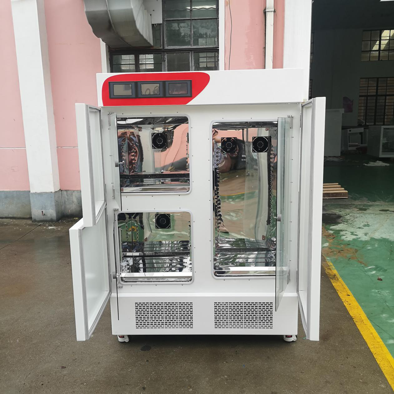 兩套進口壓縮機自動切換、確保藥品試驗長時間連續運行不發生意外故障、突破國內藥品試驗箱無法長時間連續運行的缺陷、