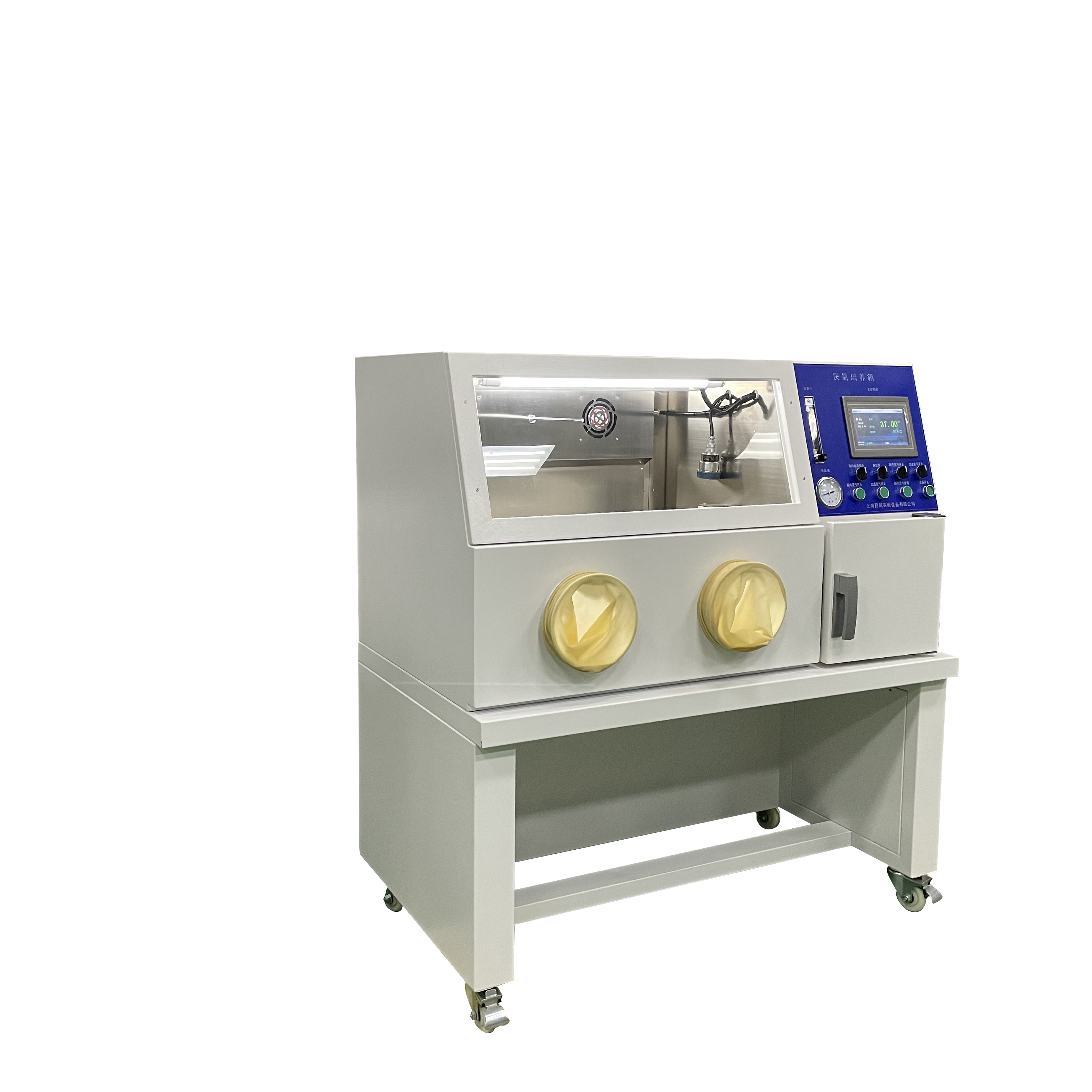 4. 恒溫培養箱內箱材質SUS304不銹鋼,操作室、取樣室前窗采用耐沖擊特種透明玻璃控制成,操作時使用專用手套可靠舒適、靈活、使用方便。