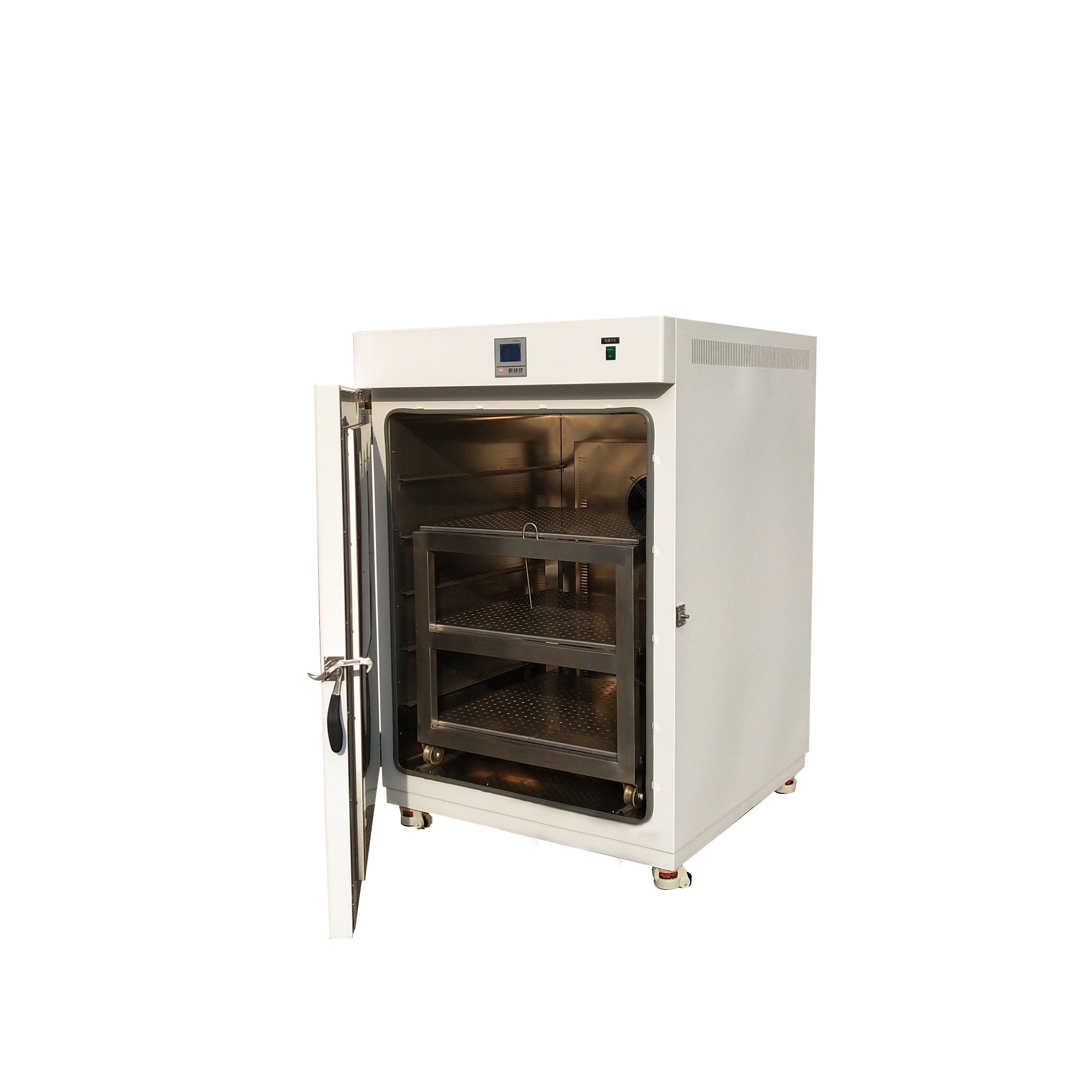 電熱鼓風恒溫干燥箱系列箱體內膽采用鋼板或鏡面不銹鋼氬弧焊制而成,箱體外殼采用鋼板,雙層鋼化玻璃。造型美觀,新穎。具有超溫報警,過熱保護,時間設置,雙目數字顯示,微電腦溫度控制系統,控溫可靠。本產品熱風循環系統由能在高溫下連續運轉風機和合理風道組成,工作室內溫度均勻。